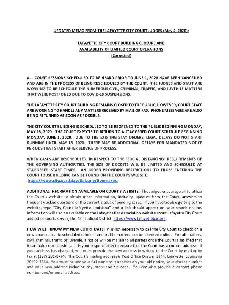 UPDATE: Lafayette City Court Announcement Broussard Youngsville LA