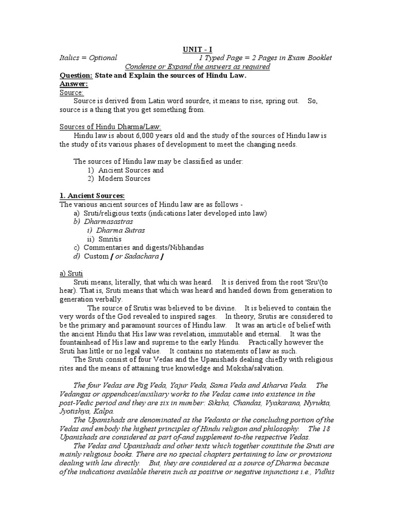 Notes Family Law I PDF Vedas Precedent