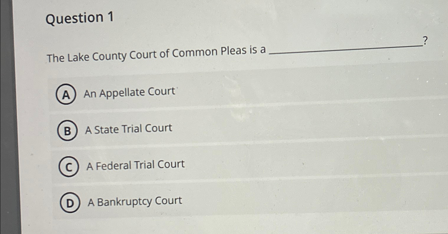 Solved Question 1The Lake County Court of Common Pleas is a Chegg com