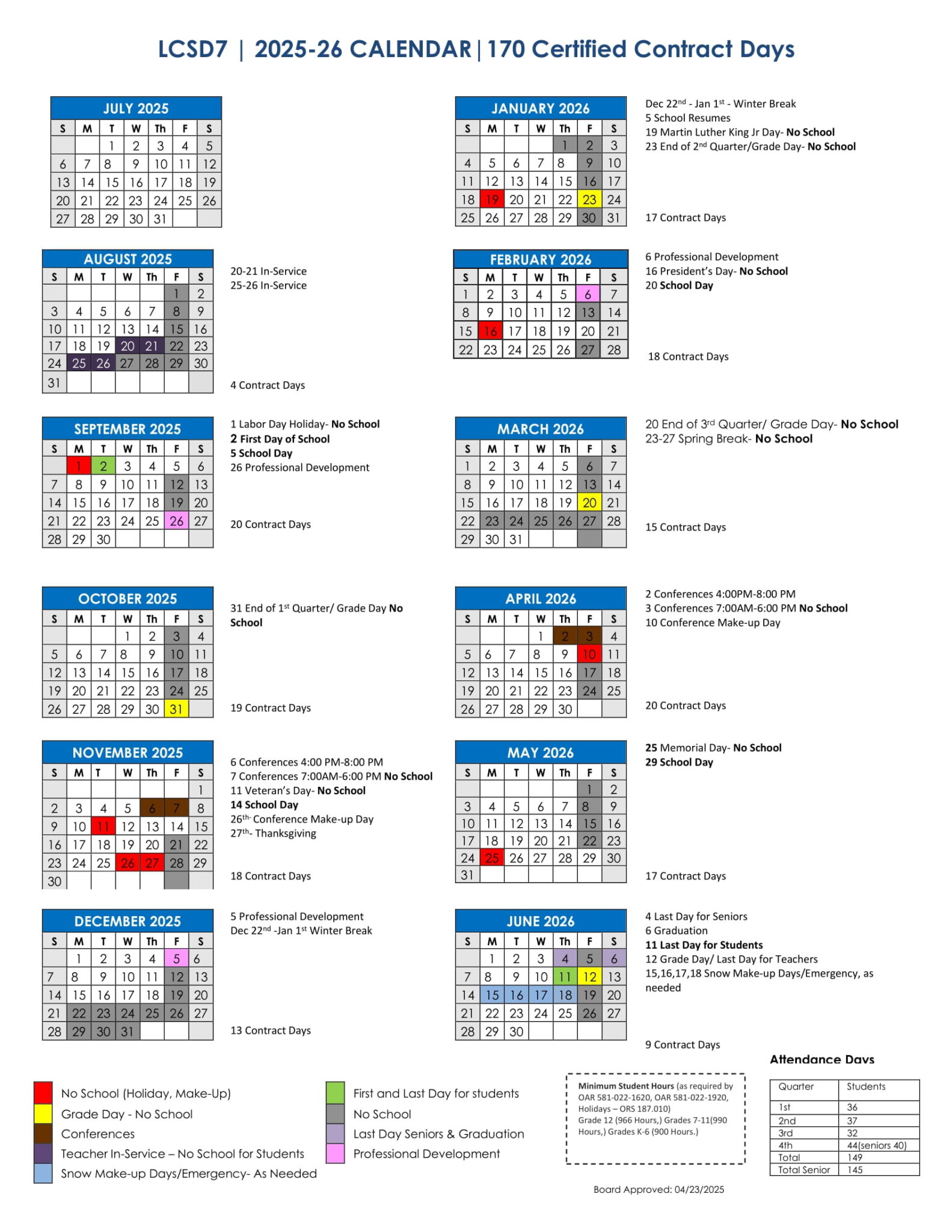 Lake County School District 7 Calendar 25 26 Revised PDF EduCounty