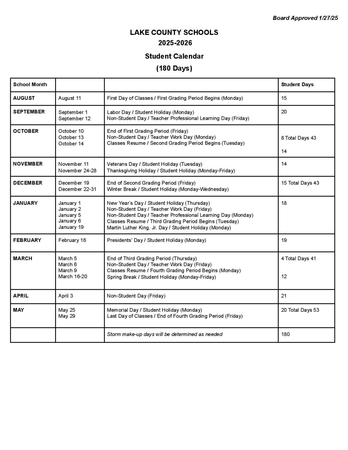 Lake County Schools Calendar 2025 2026 Holidays
