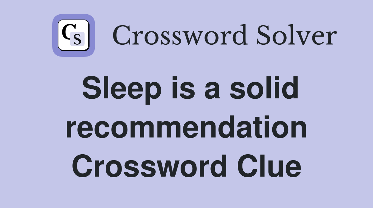Sleep is a solid recommendation Crossword Clue Answers Crossword Solver