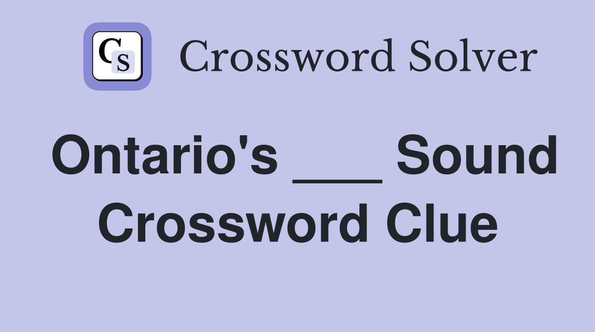 Ontario #39 s Sound Crossword Clue Answers Crossword Solver