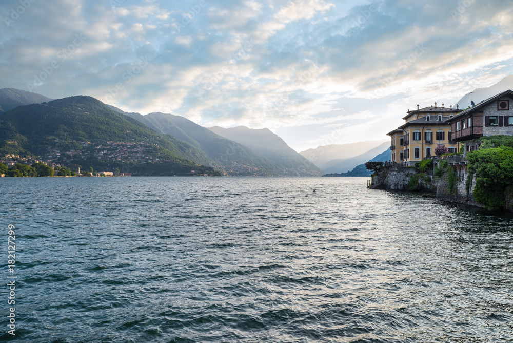 Como lake Como city northern Italy View of Lake Como by the end of