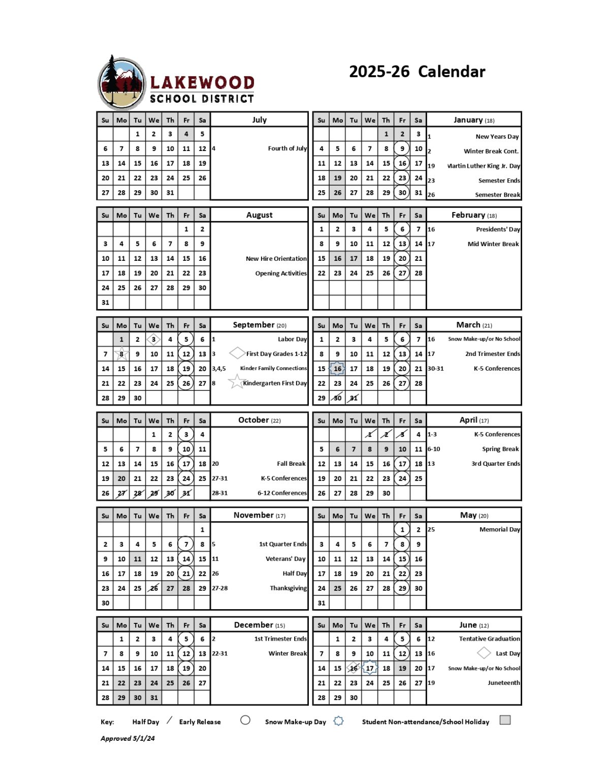 Lakewood School district Calendar 25 26 Revised PDF EduCounty