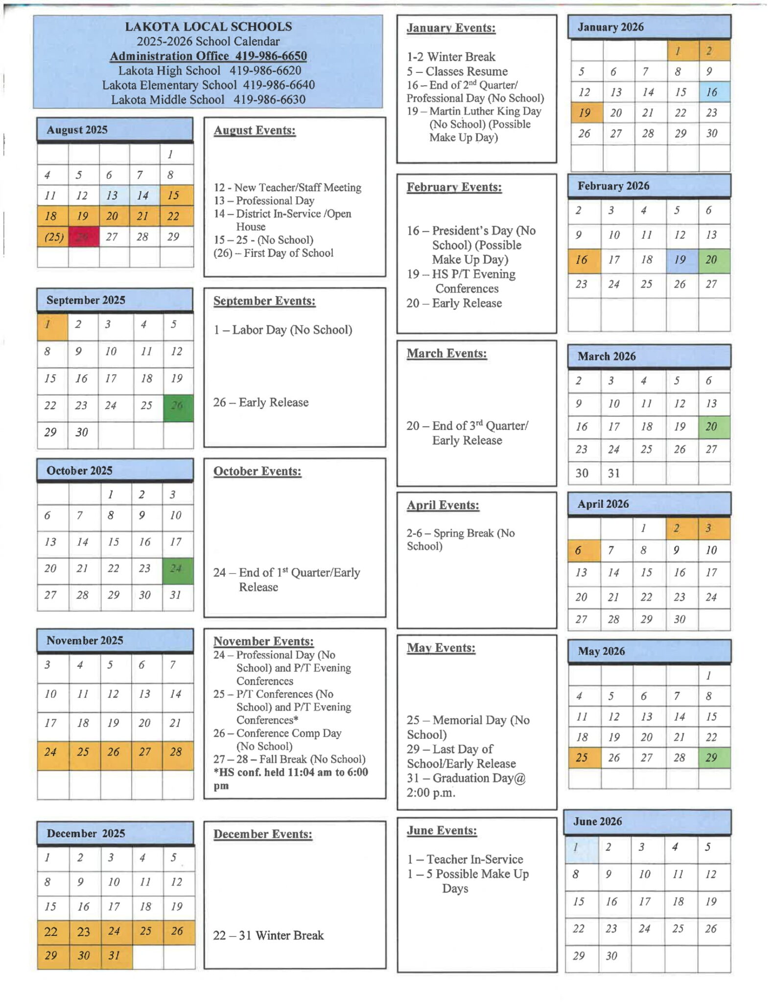Lakota Schools Calendar 2025 2026 Holidays Download Now New School