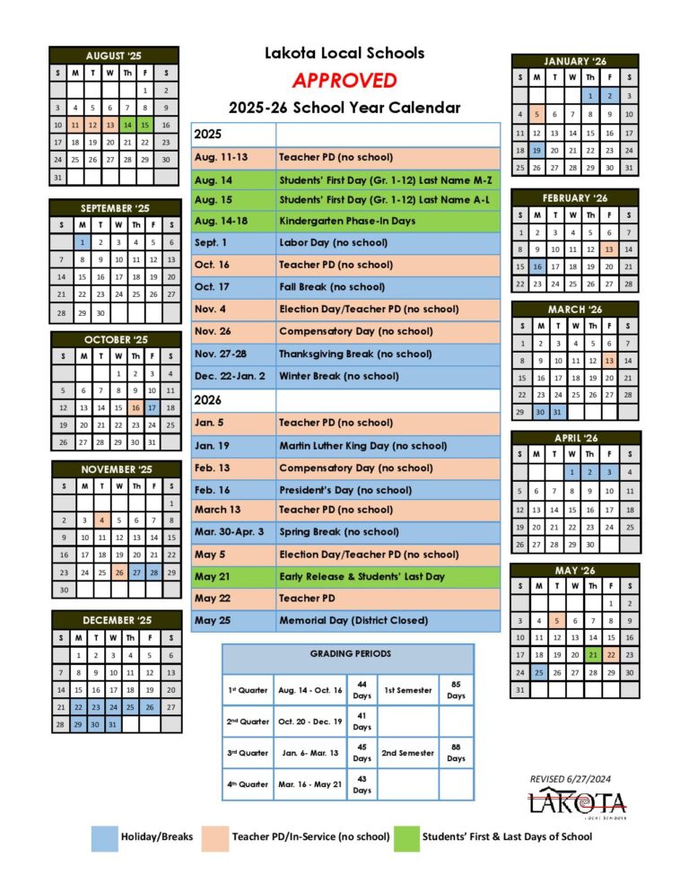 Lakota Schools Calendar 2025 2026 Holidays Download Now
