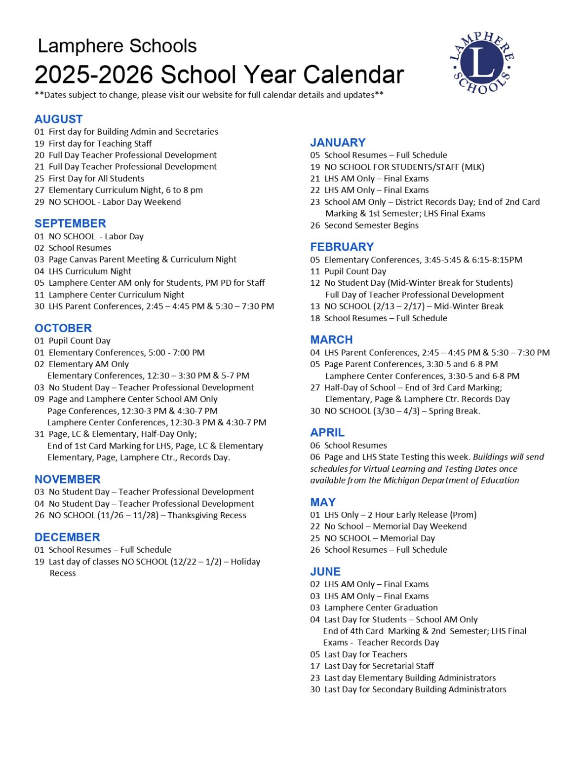 Here are some of the images for Lamphere Schools Calendar that we found in our website database.