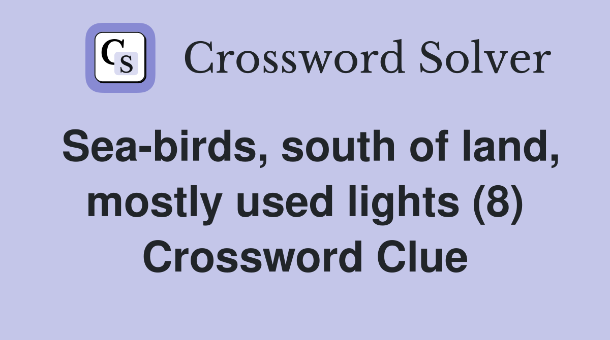 Sea birds south of land mostly used lights (8) Crossword Clue