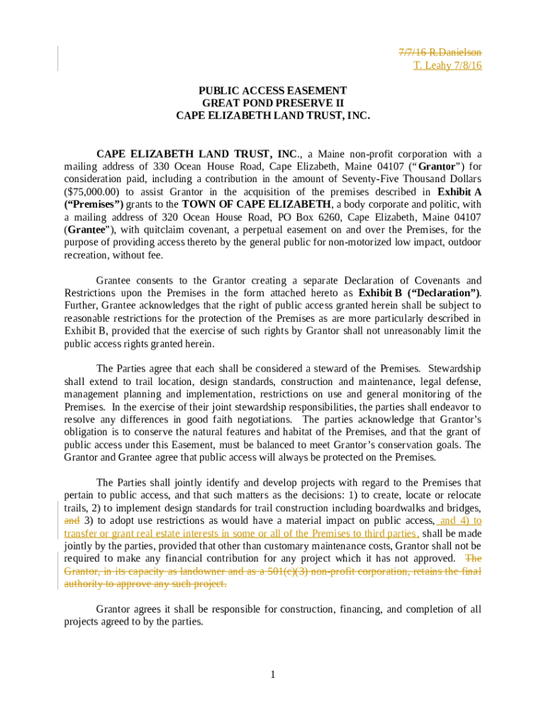 Pond Cove at Cape Elizabeth Land Trust Doc Template pdfFiller