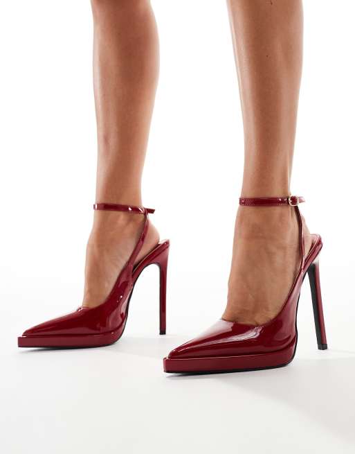 Simmi London Landen platform heeled court shoe in burgundy ASOS