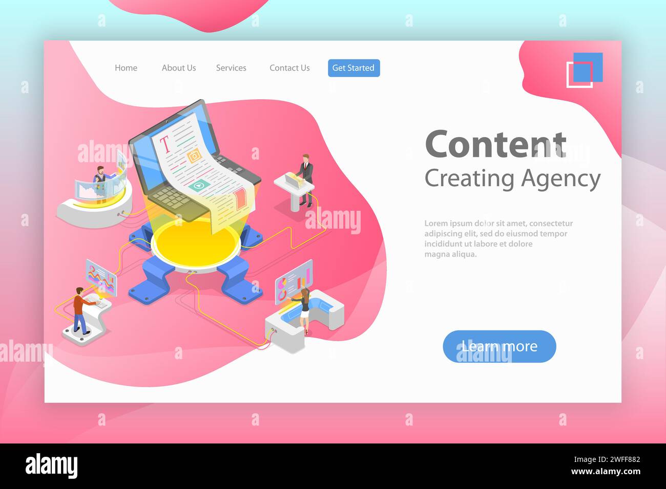 Flat isometric vector landing pate template of content creating