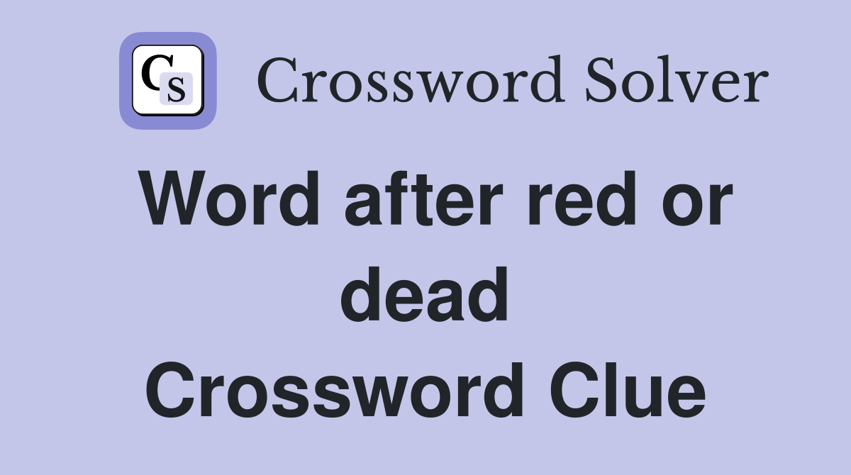 Word after red or dead Crossword Clue Answers Crossword Solver