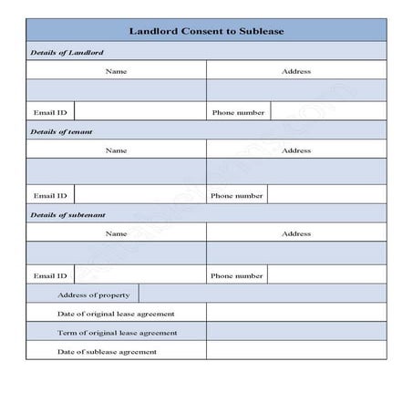 Landlord Consent to Sublease Fillable PDF Template Editable Forms #39 s