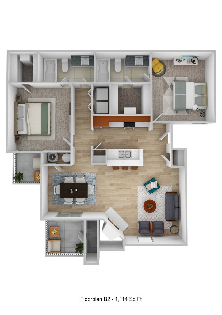 B2 Floorplan 1 114 SqFt Landmark at Pine Court