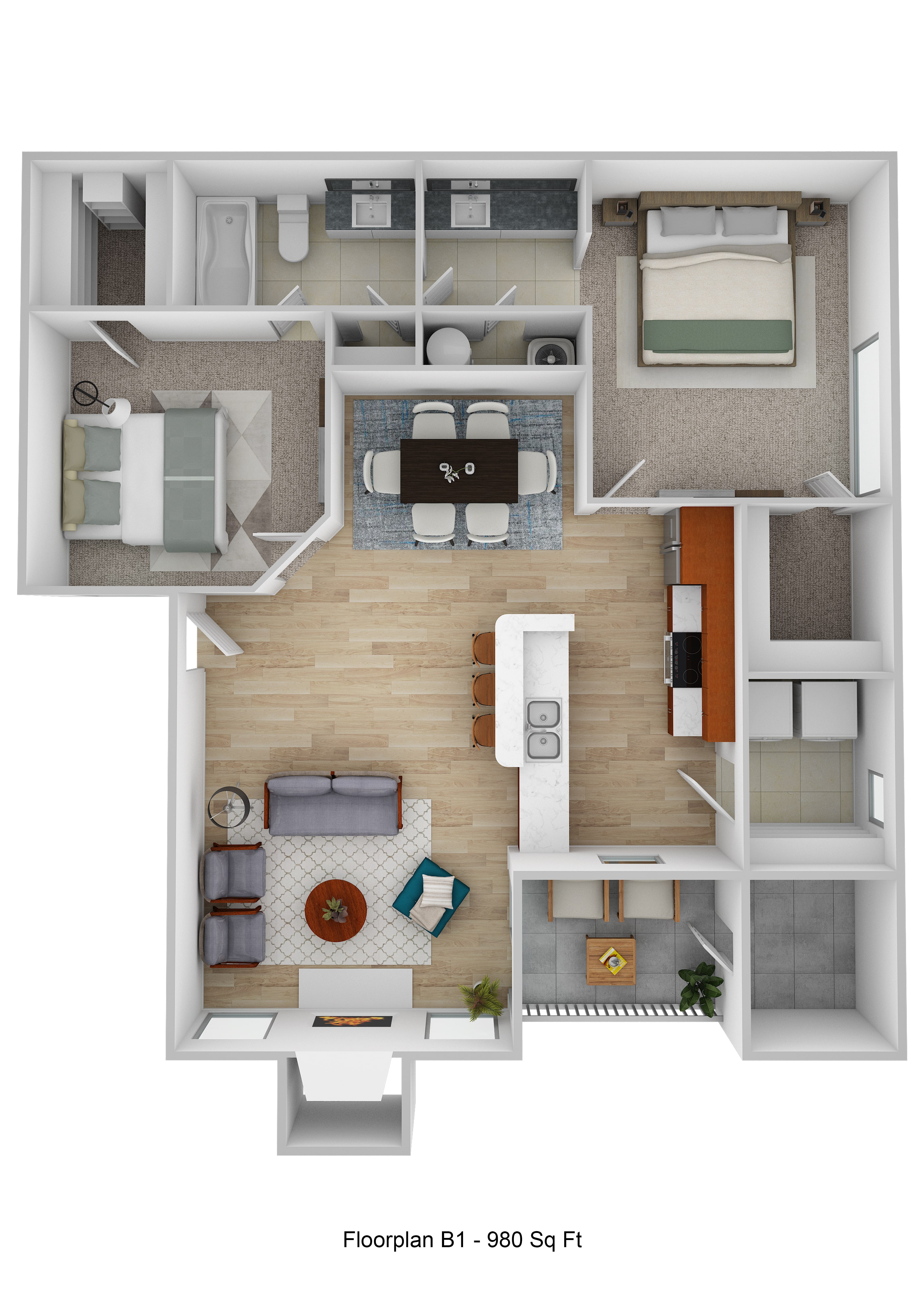 B1 Floorplan 980 SqFt Landmark at Pine Court