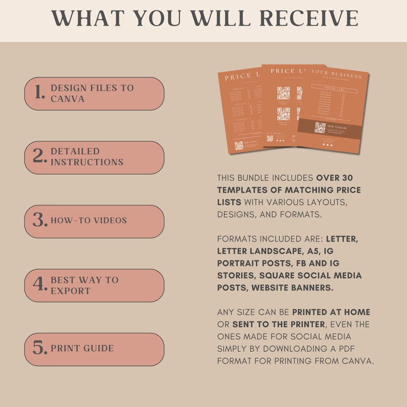 Terracotta Price List Template Bundle: Boho Service Menu (canva DIY