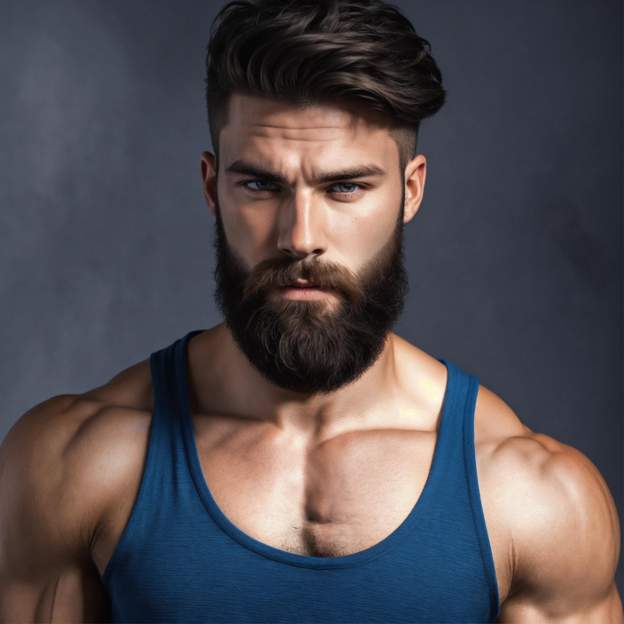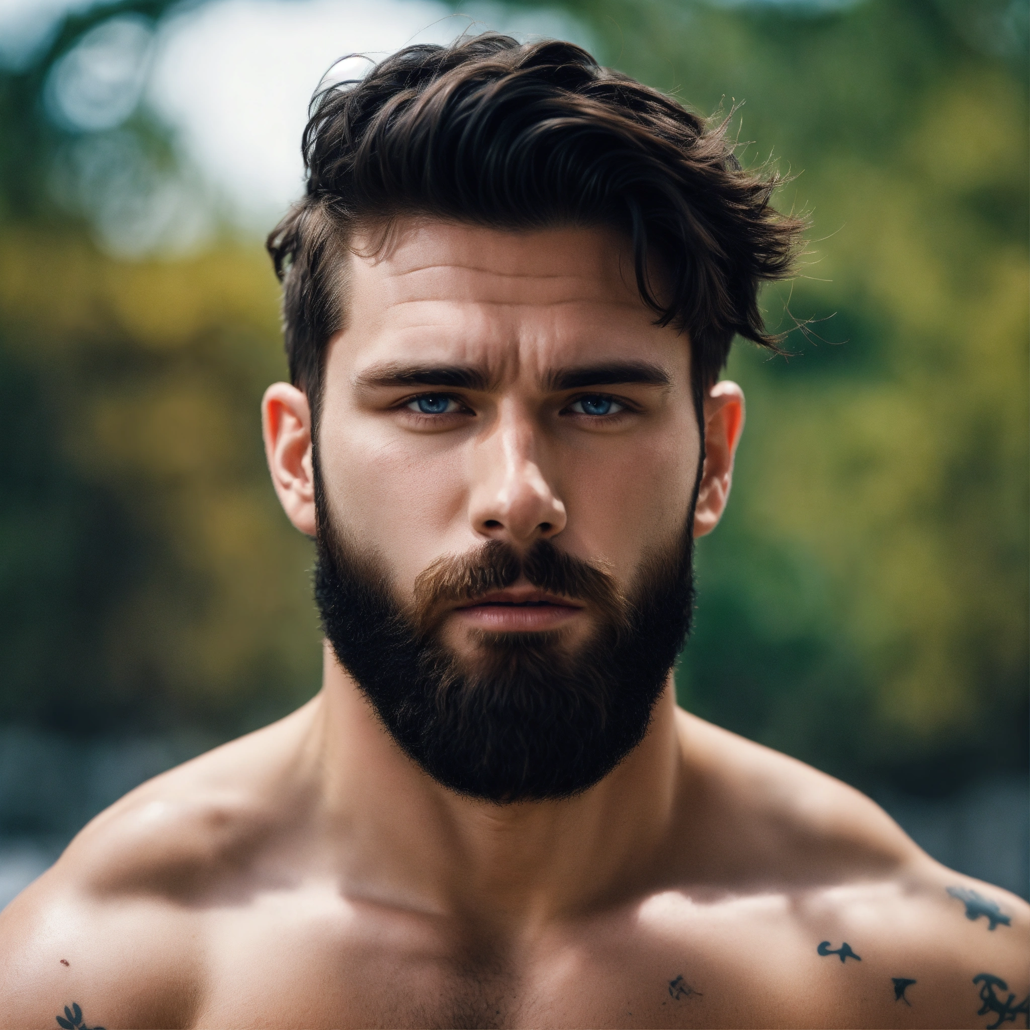 Lexica Hot white boy face blue ayes black hair muscular face and beard