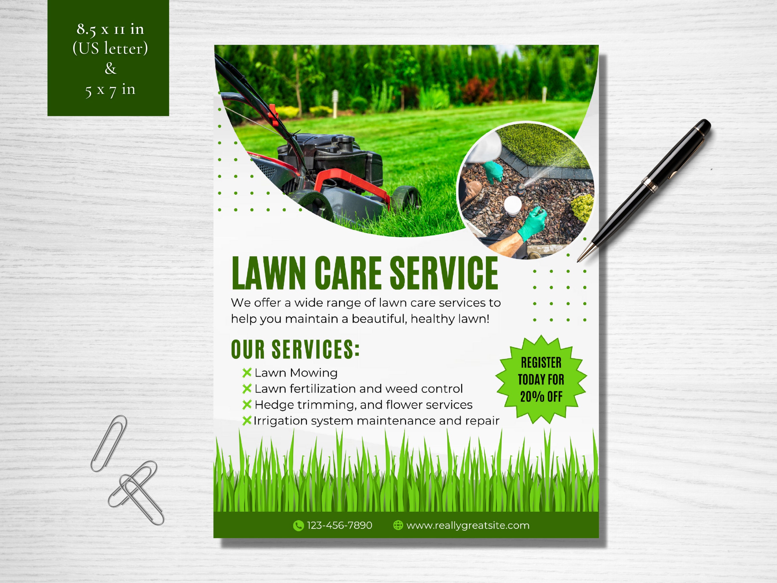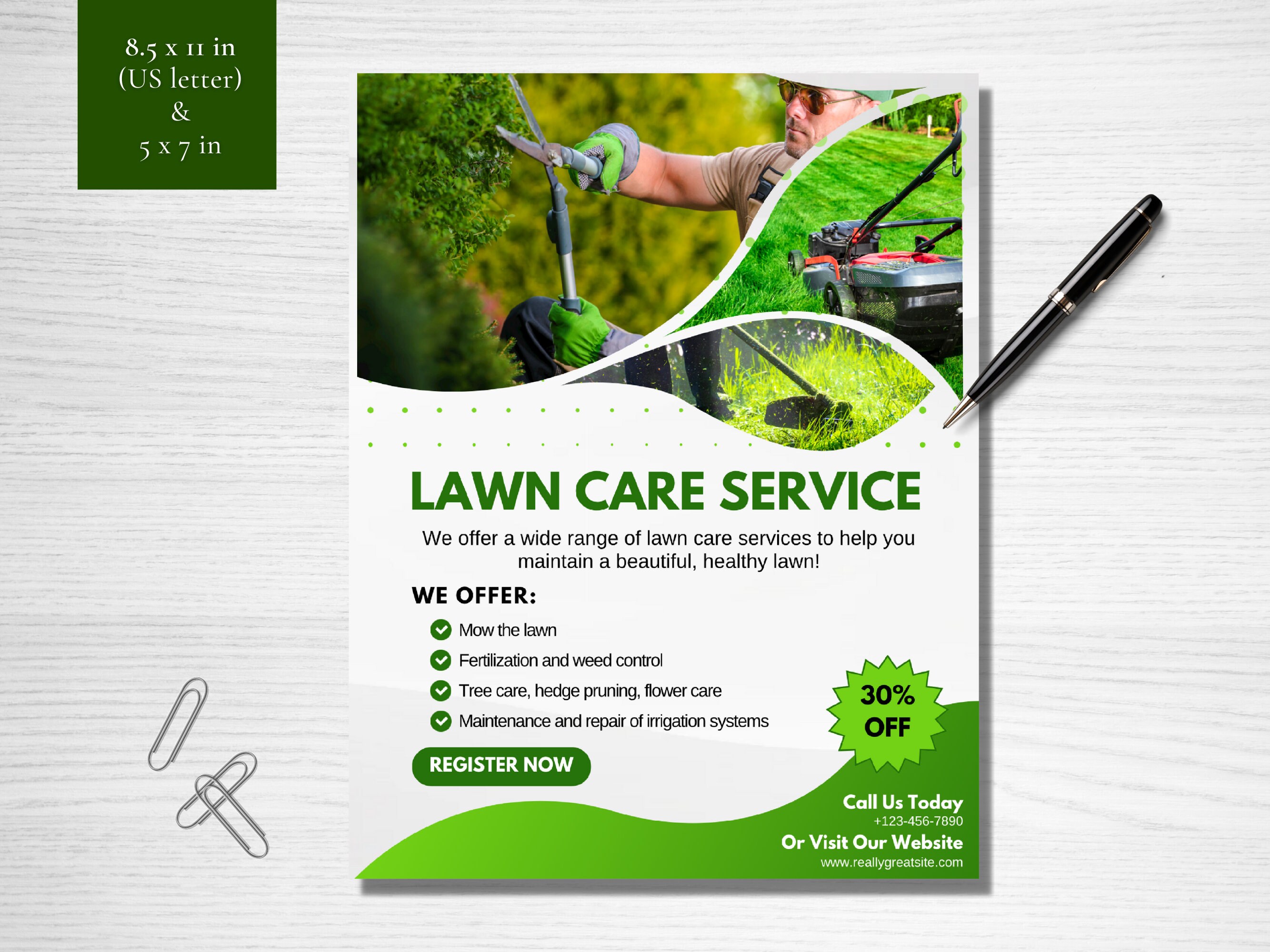 Lawn Care Flyer Template Editable Marketing Design Customizable
