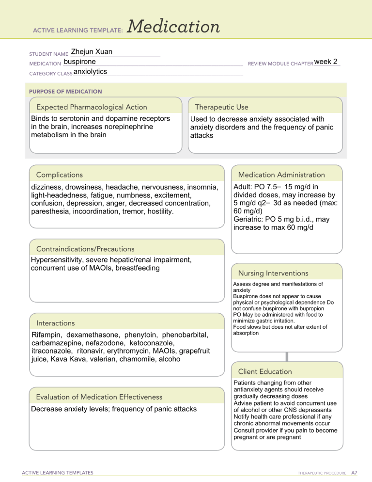 Buspirone Medication Template