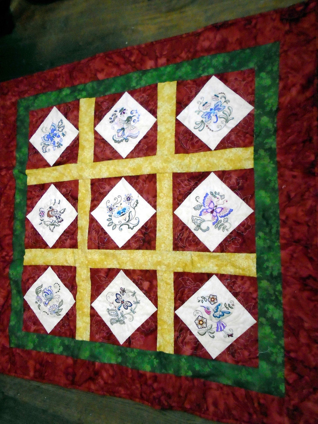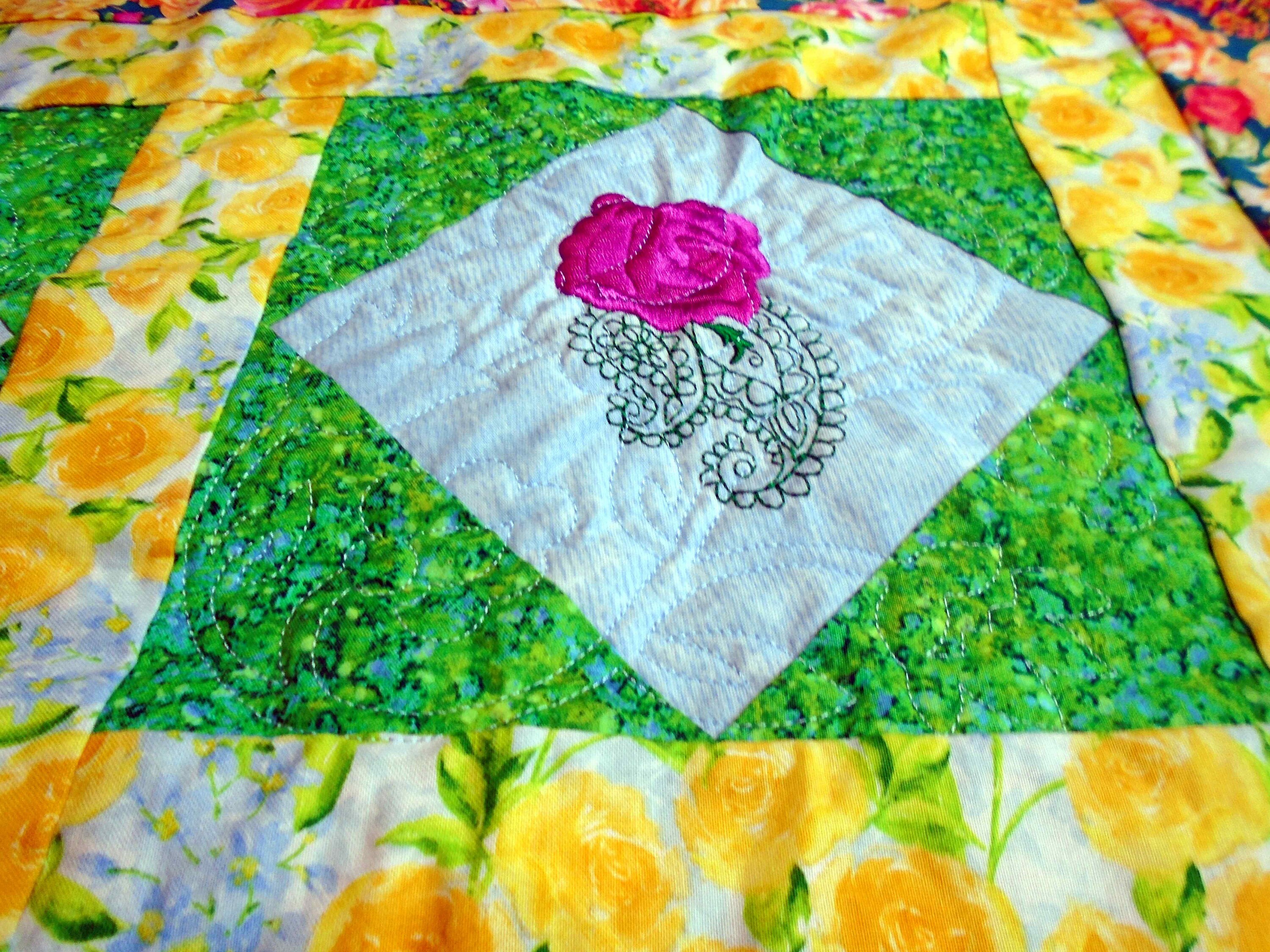 Rose Lap Quit Wall Hanging Table Topper Chair Protector Wheelchair