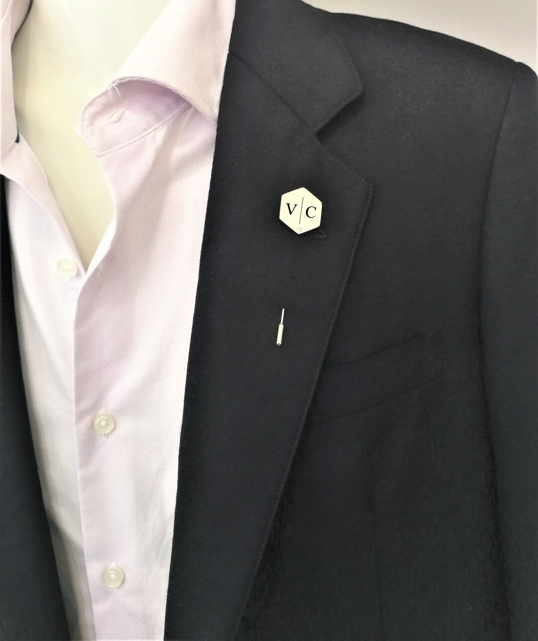 Hexagon Lapel Pin With Diamond initial Lapel Pin groomsmen Gift Groom