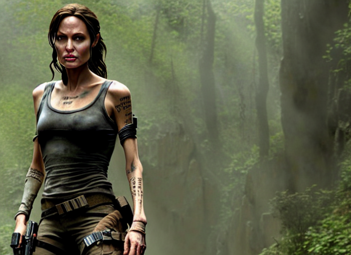 Ellie from the Last of Us as Lara Croft film still Stable Diffusion
