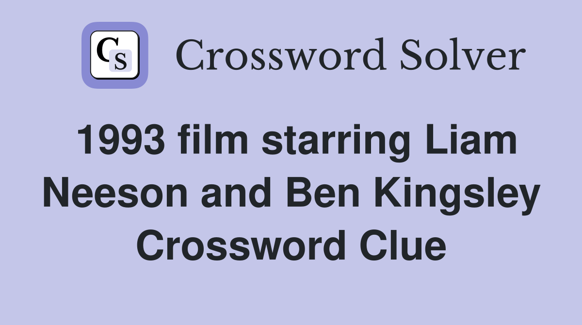 1993 film starring Liam Neeson and Ben Kingsley Crossword Clue