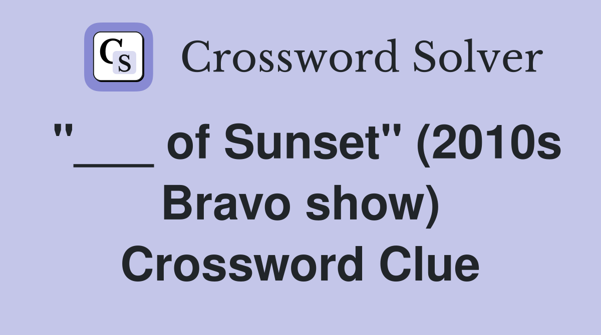 of Sunset quot (2010s Bravo show) Crossword Clue Answers Crossword Solver