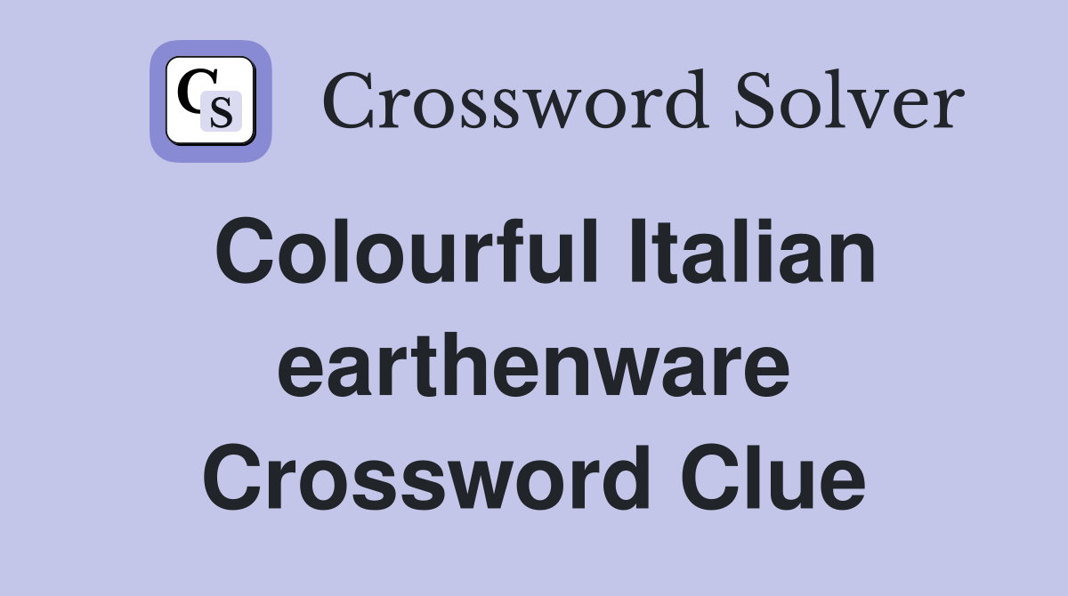 Colourful Italian earthenware Crossword Clue Answers Crossword Solver