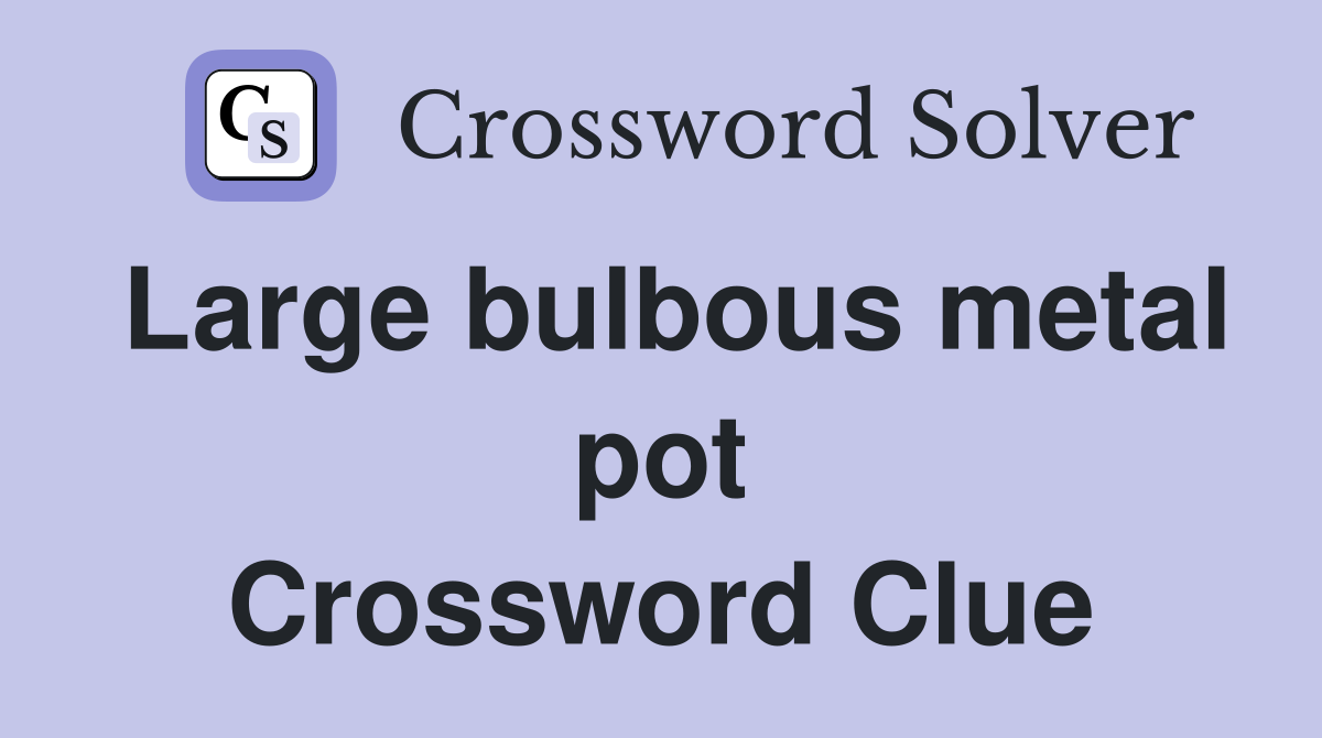 Large bulbous metal pot Crossword Clue Answers Crossword Solver