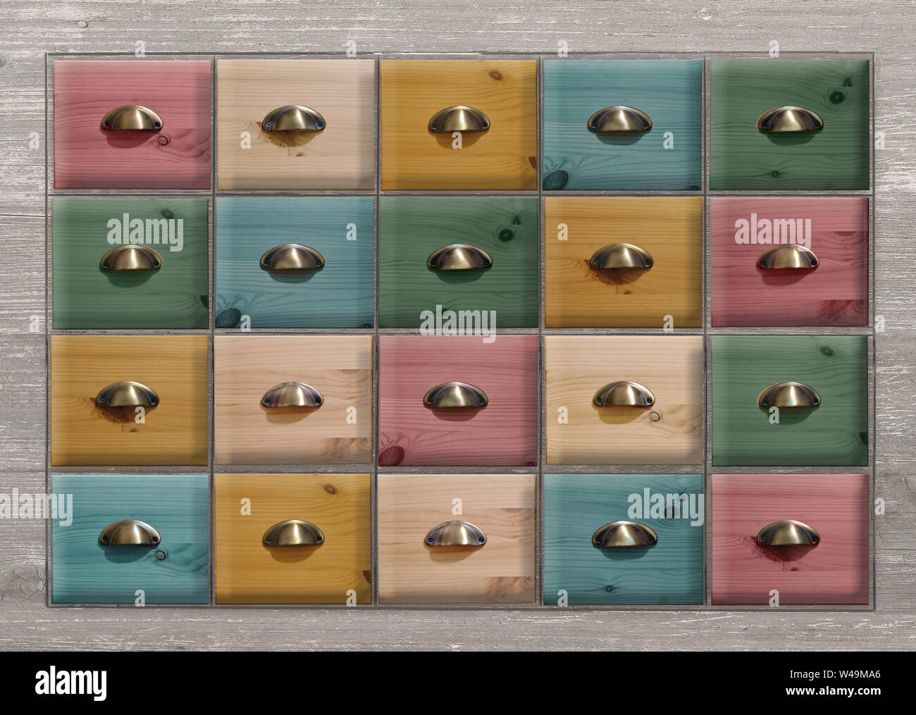 pharmacy door drawer advent calendar christmas wood rustic Stock Photo