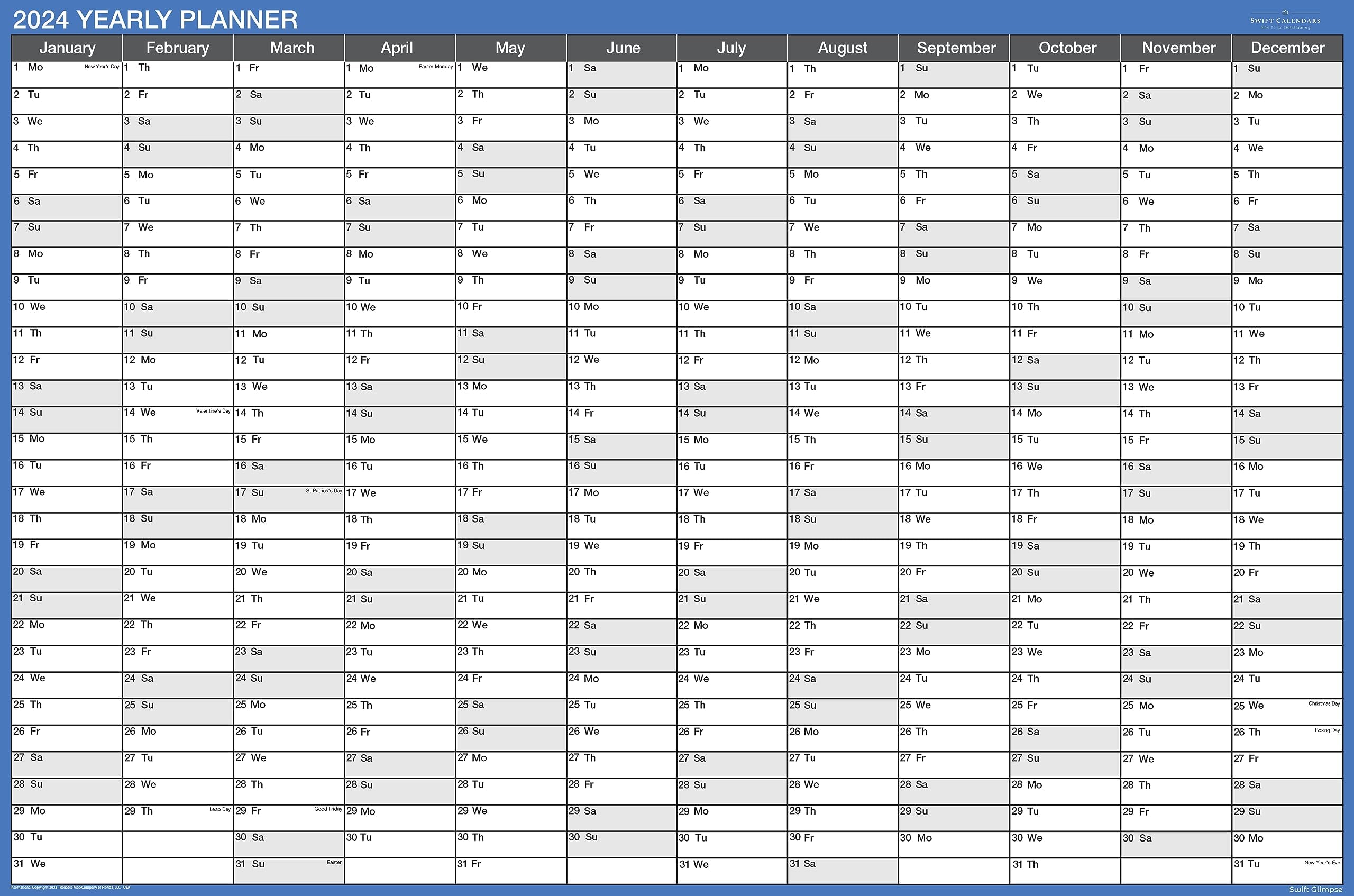 A1 SwiftGlimpse Blank Undated Annual Yearly Wall Calendar 92cm x 61cm