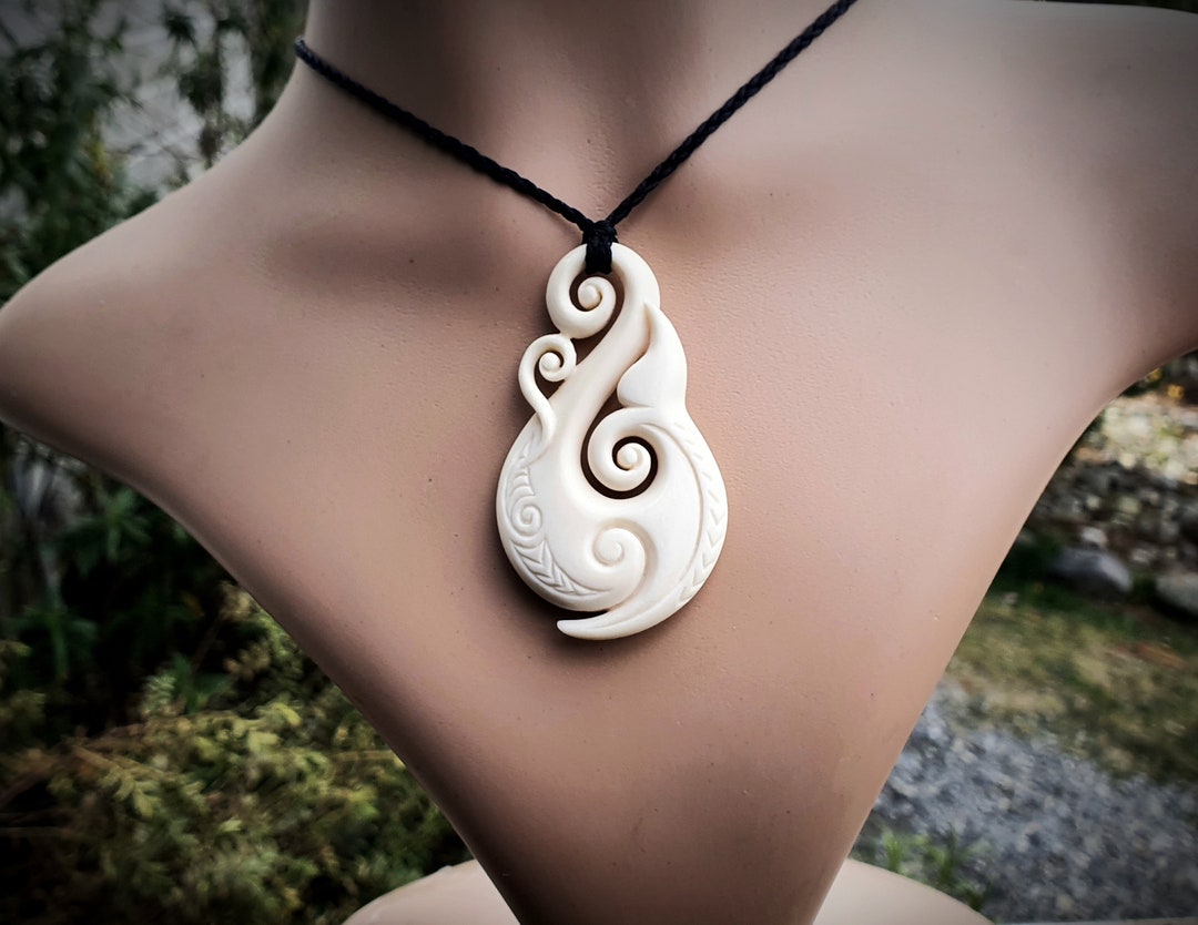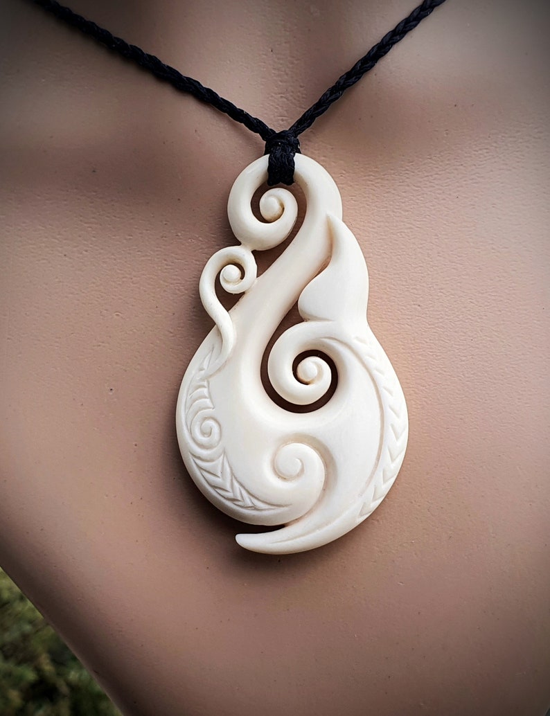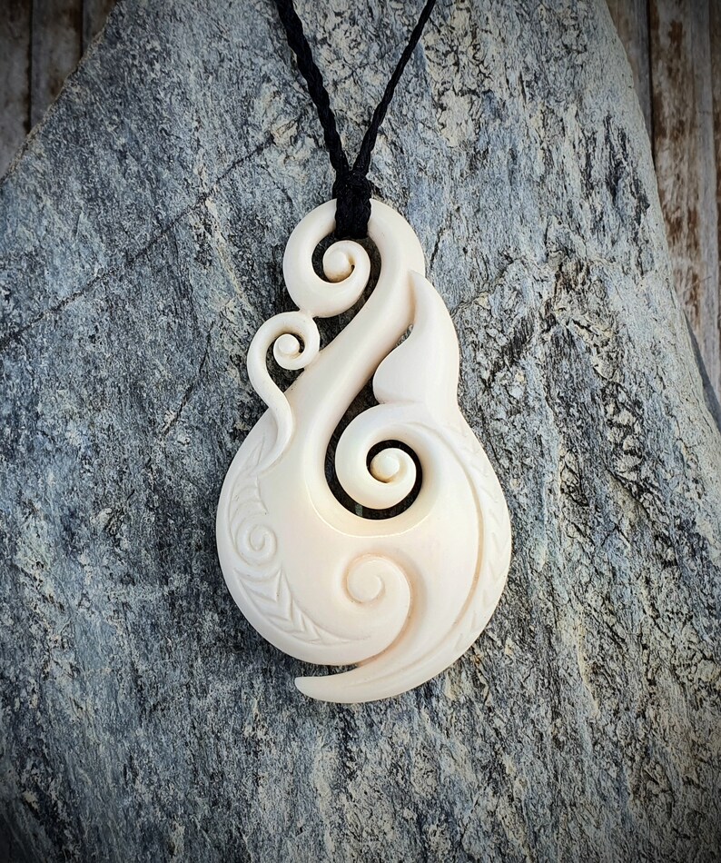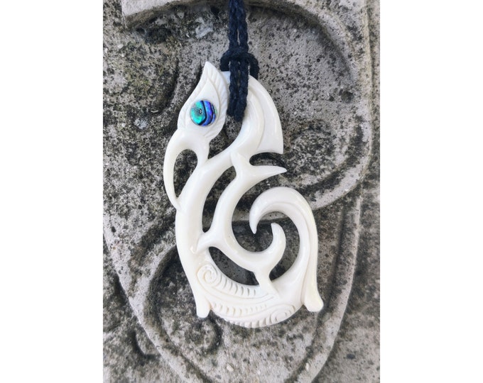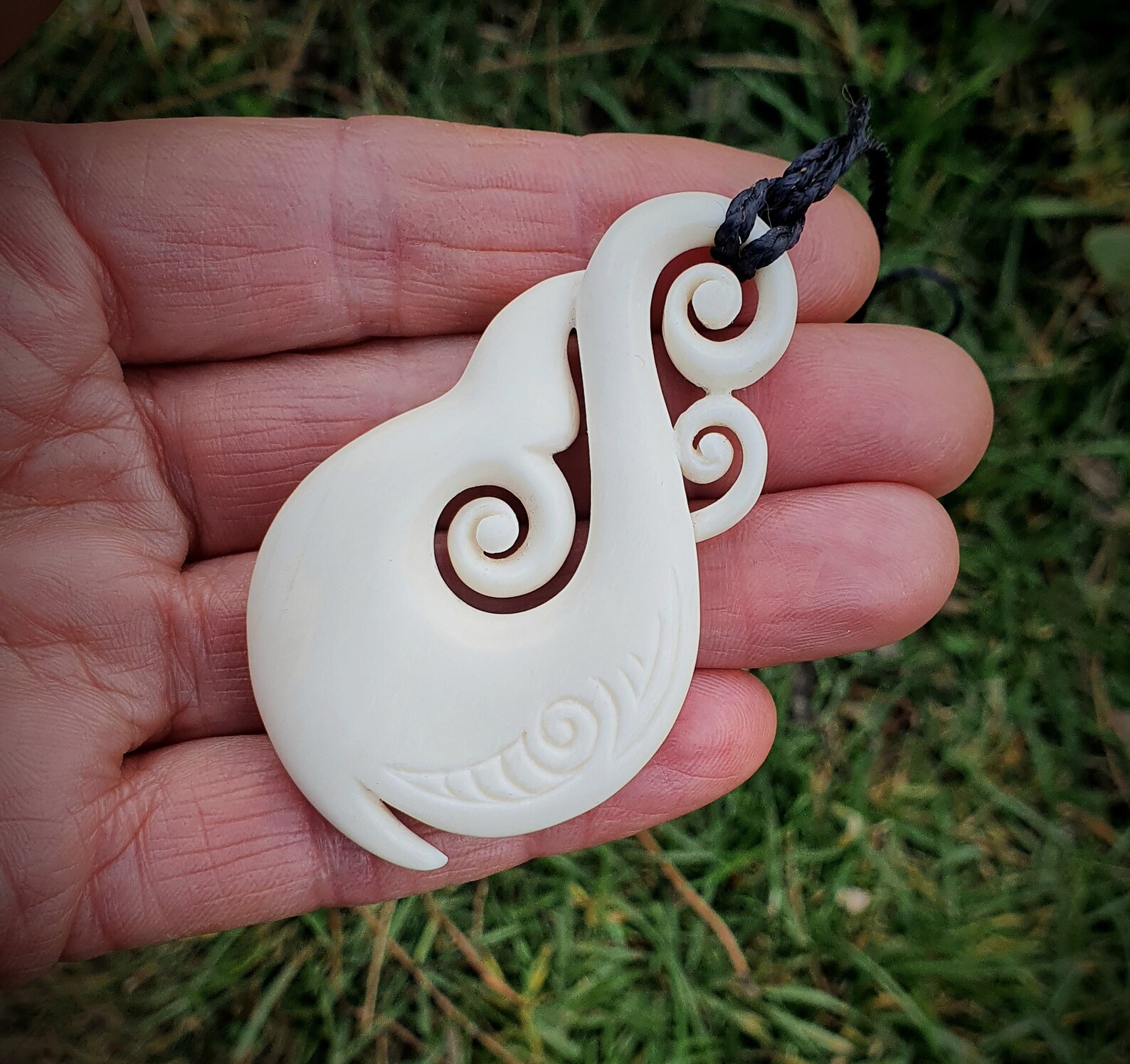 Large Fishhook Whales Tail Design Hand Carved New Zealand Original Hei