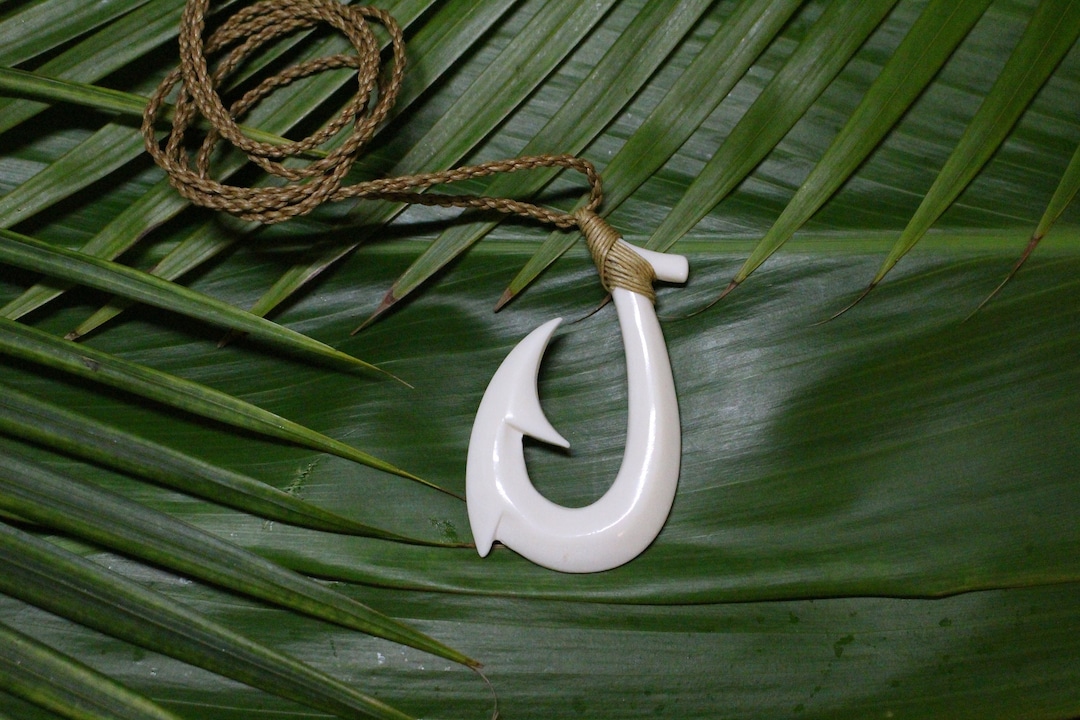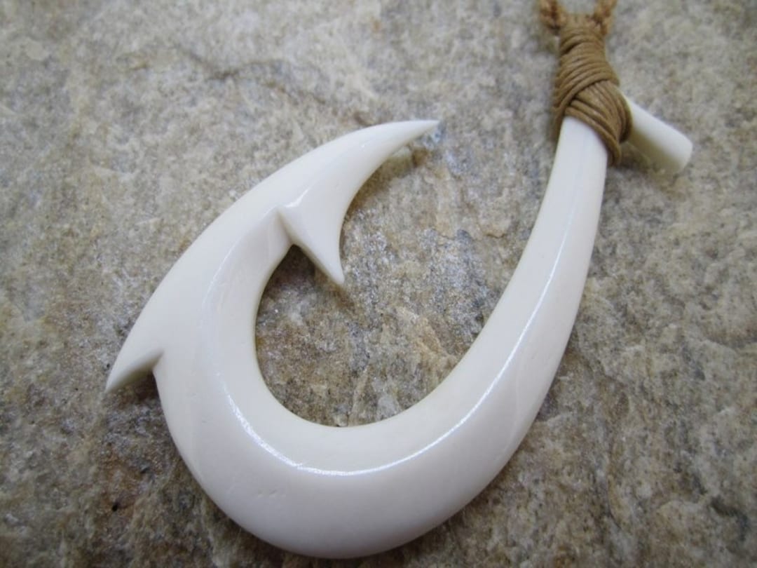 Hawaiian Large Fishhook Pendant Authentic Buffalo Bone Souvenirs From