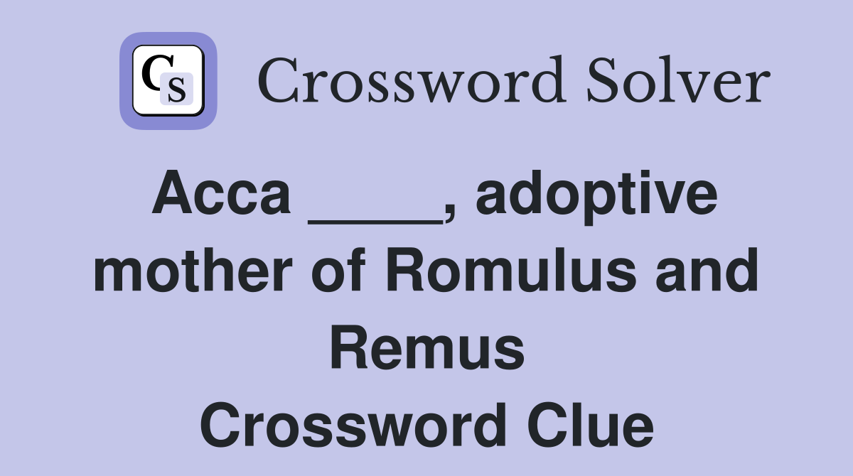 Acca adoptive mother of Romulus and Remus Crossword Clue