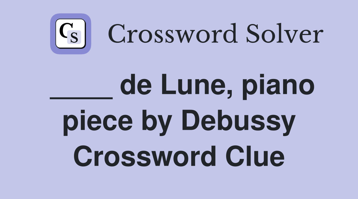 de Lune piano piece by Debussy Crossword Clue Answers Crossword Solver