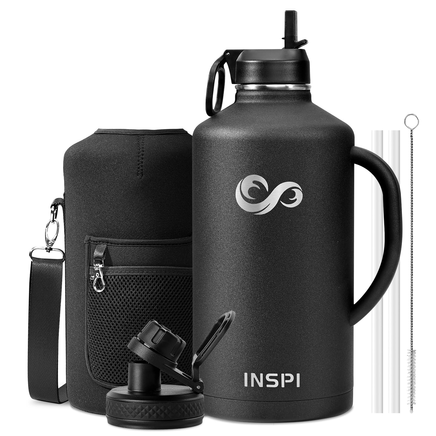 Amazon com: 128 oz Gallon Water Bottle with Straw 2 Lids INSPI Double
