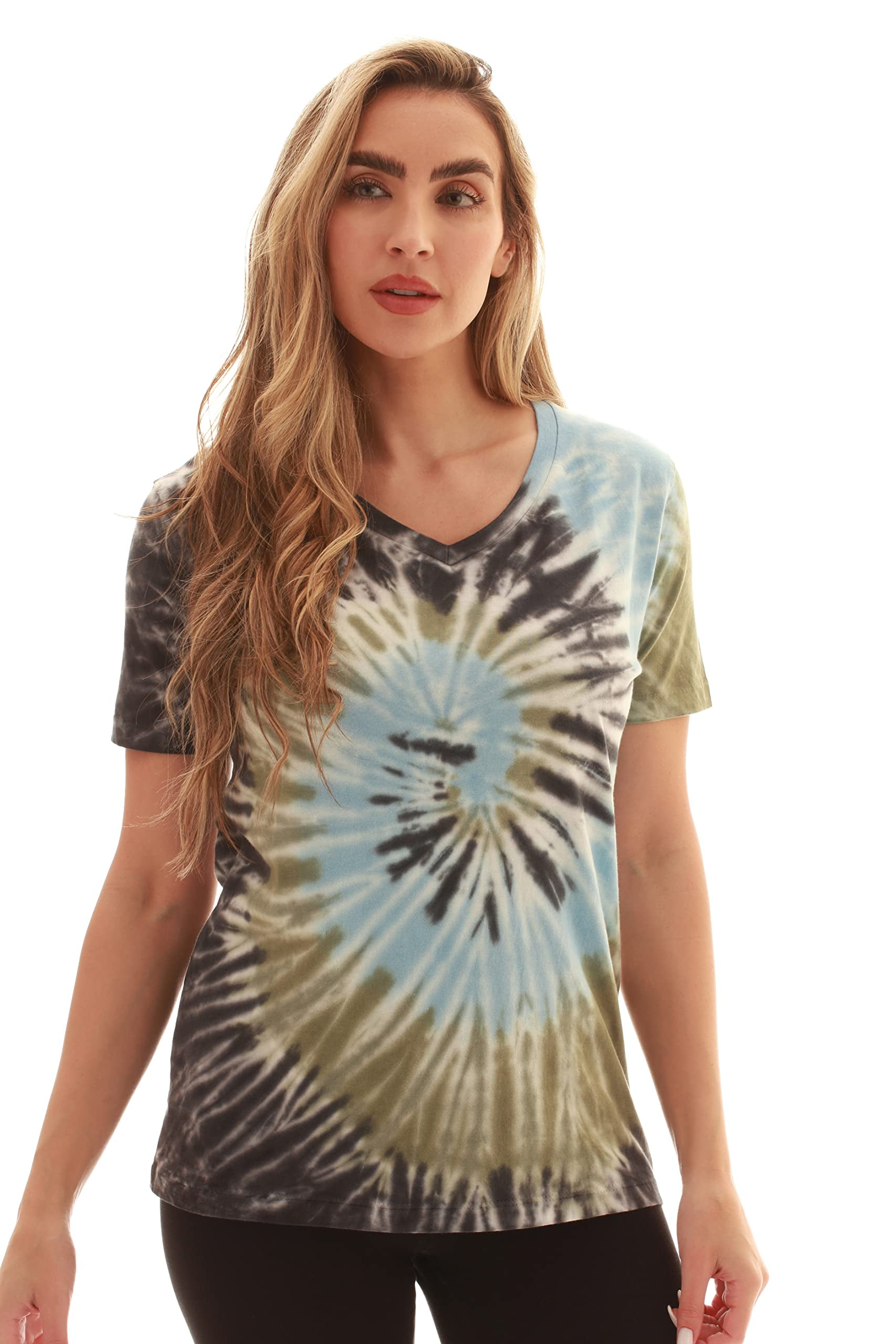 Just Love Tie Dye V neck T Shirt (Tie Dye Black Grey Blue Large