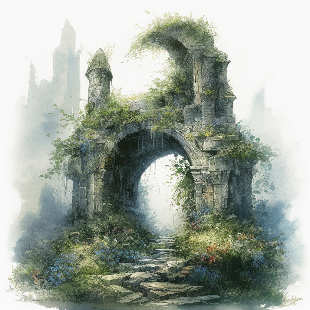 Premium Photo Watercolor of Moss Covered Stone Gate Fantasy Style