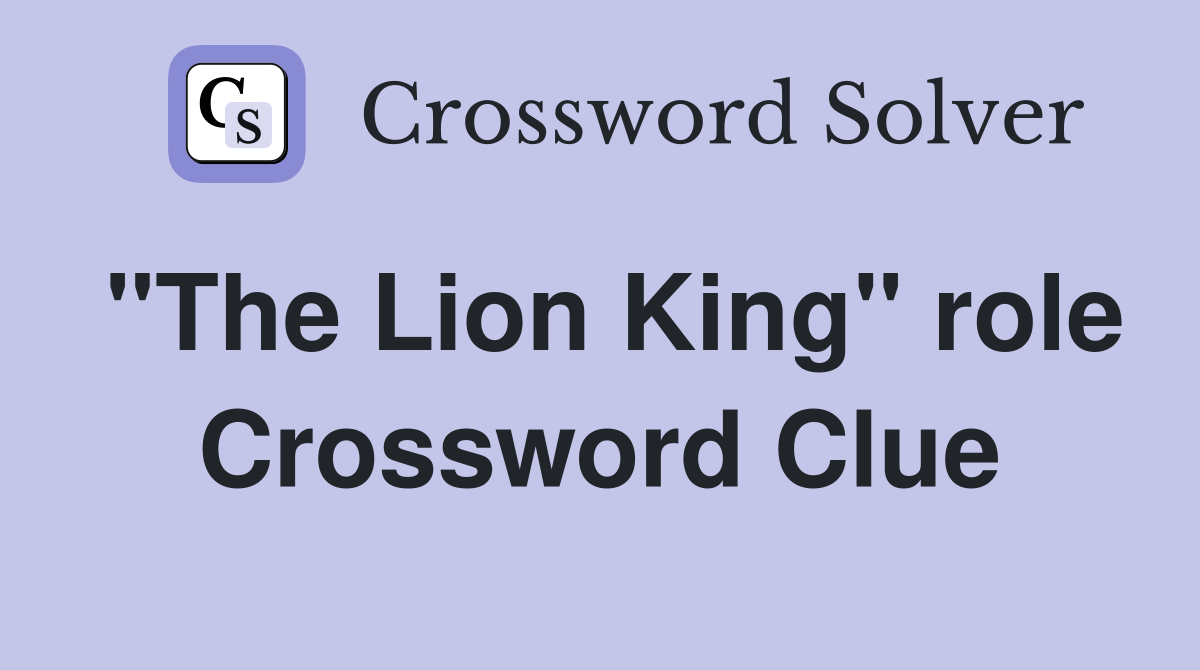 quot The Lion King quot role Crossword Clue Answers Crossword Solver