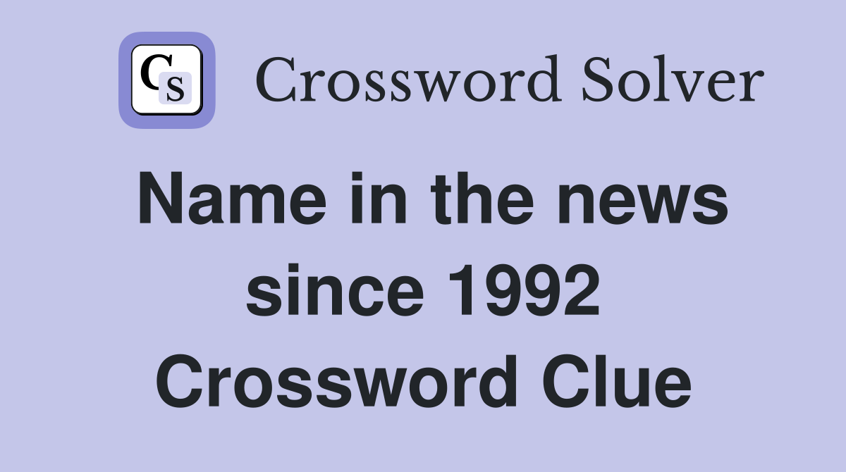 Name in the news since 1992 Crossword Clue Answers Crossword Solver