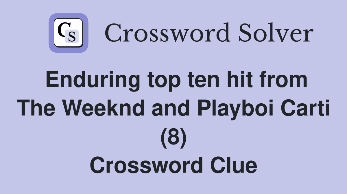 Enduring top ten hit from The Weeknd and Playboi Carti (8) Crossword