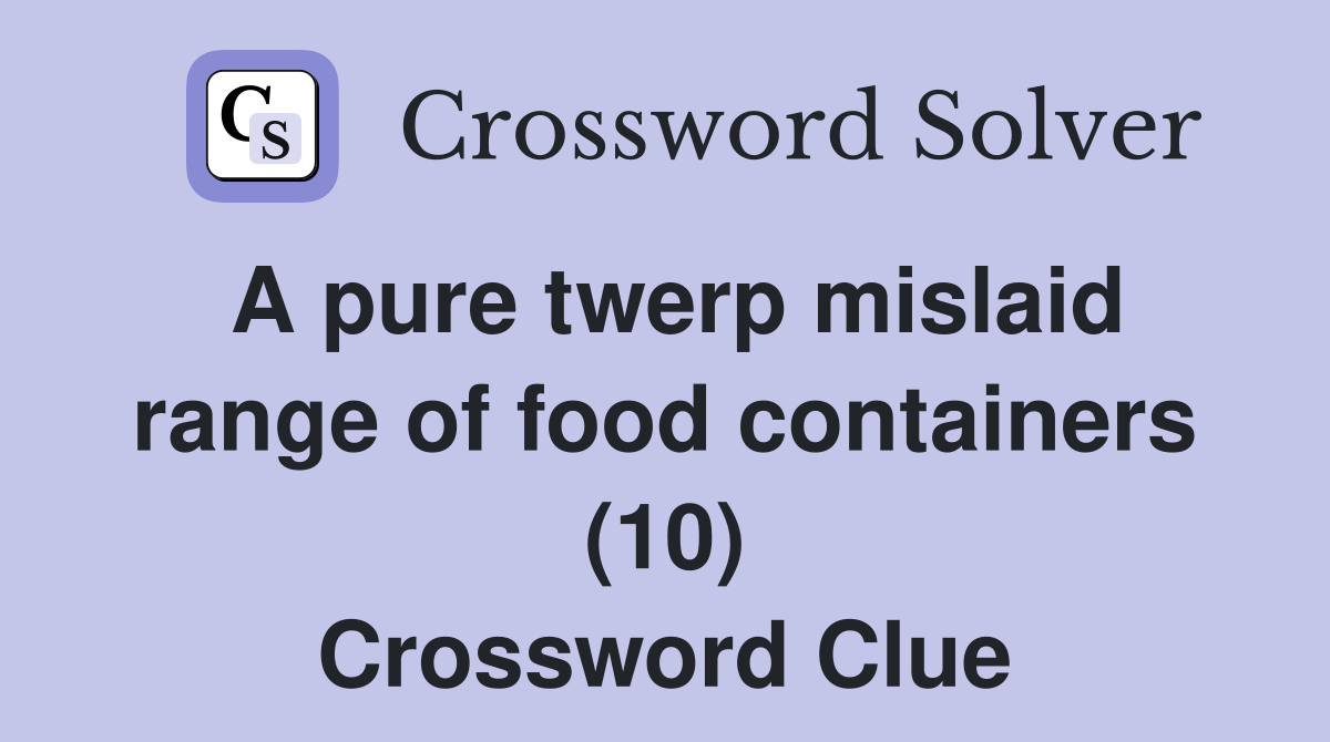 A pure twerp mislaid range of food containers (10) Crossword Clue