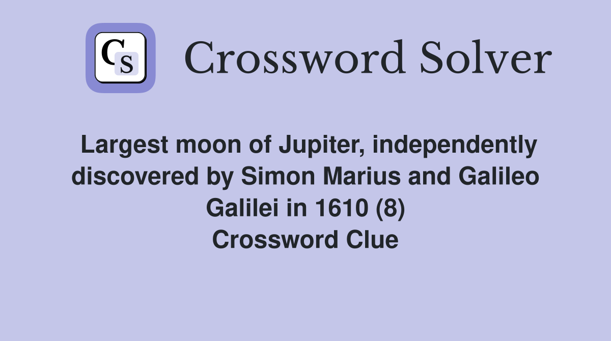 Discoverer of Jupiter #39 s four largest moons Crossword Clue Answers