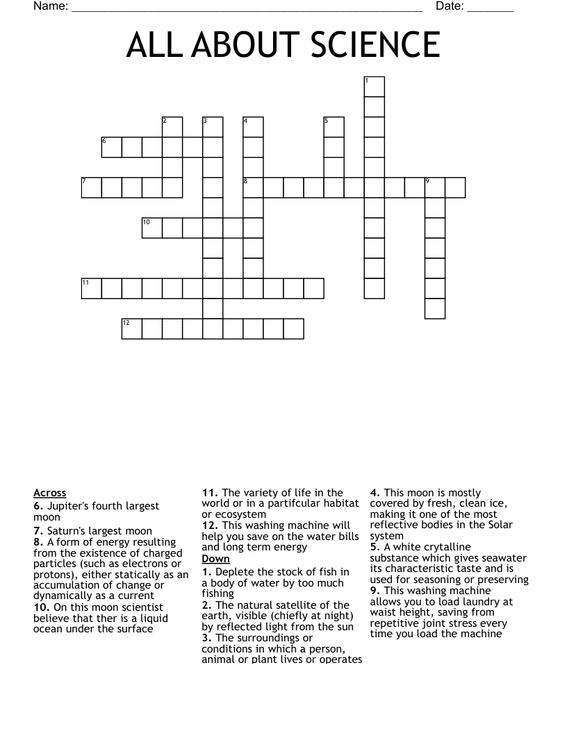 Saturn Crossword Puzzle Worksheet Activity by Crossword Corner TPT