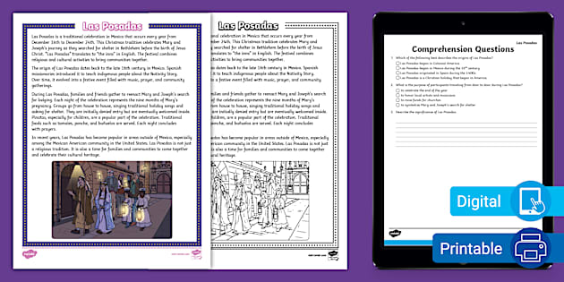 7th Gr Las Posadas Reading Passage Comprehension Worksheet