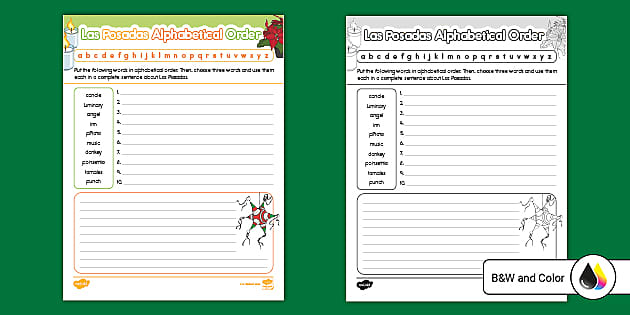Las Posadas Alphabetical Order Worksheet for 1st 2nd Grade