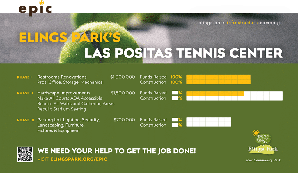 ELINGS PARK RECEIVES MATCHING GRANT OF $488 000 FOR LAS POSITAS TENNIS