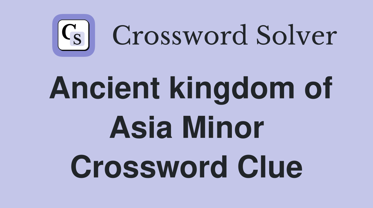 Ancient kingdom of Asia Minor Crossword Clue Answers Crossword Solver